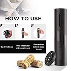 - [Full-Automatic]: This Electric Wine Opener features an ergonomic grip for easy handling designed to fit all traditional wine bottles, just click button and the cork remove automatically with true hands free.