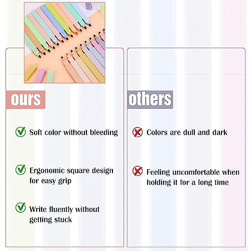 [Easy to Hold] The highlighter with square pestle design is unique. Our highlighters are comfortable and easy to hold without a sore hand. It doesn’t roll around when it doesn’t use.