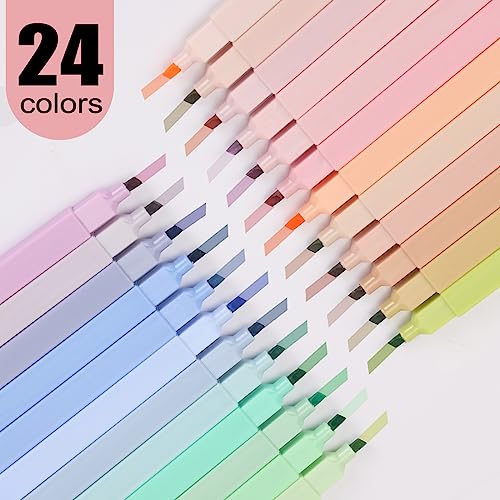 [Variety Aesthetic Colors] Package includes 24 bible highlighters in beautiful morandi colors. These aesthetic colors and the right amount of transparency will make your highlighted text easy to read without distracting you from your studies and work.[Bible highlighters and Pens No Bleed] The chisel point is soft for smooth writing. These colored bible highlighters produce even ink so there is no need to worry that the ink will leak.