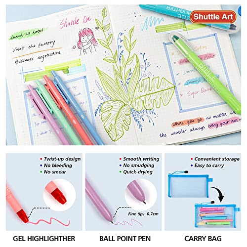 Bible Highlighters and Pens, 22 Pack Journaling Kit, 12 Colors Gel Highlighters and 10 Colors Ballpoint Pens with a storage bag, Bible Markers No Bleed Through by Shuttle Art